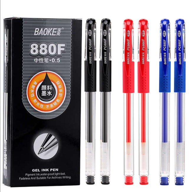 宝克中性笔880F黑色签字笔0.5mm学生文具学习用品考试备考用笔1盒12支