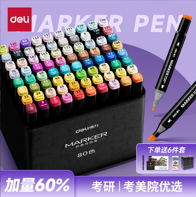 得力马克笔双头油性水彩笔正版套装小学生儿童专用手绘动漫美术